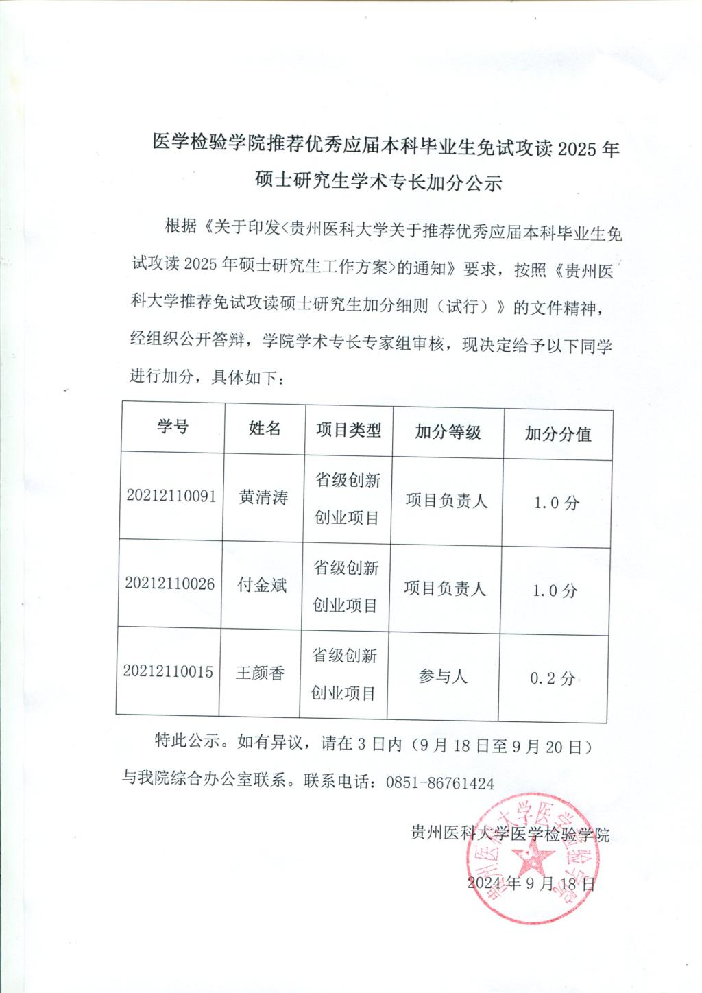 xc体育推荐优秀应届本科毕业生免试攻读2025年硕士研究生学术专长加分公示