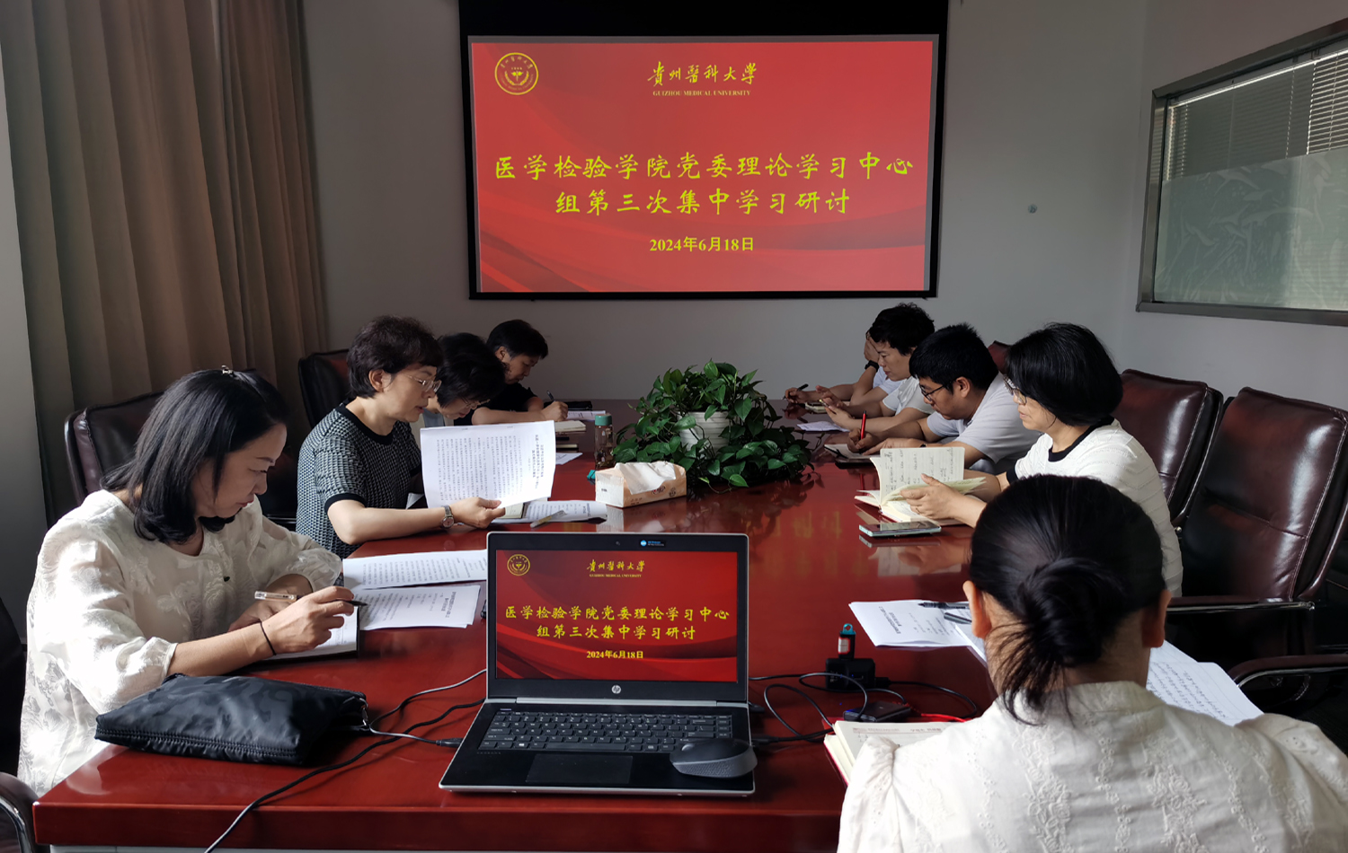 6月18日,公司党委在附属医院临床检验中心六楼会议室举行理论学习中心组第三次集中学习研讨,会议由公司党委书记李雪梅主持,公司党政班子成员、各党支部书记,教研室主任等参加会议。
