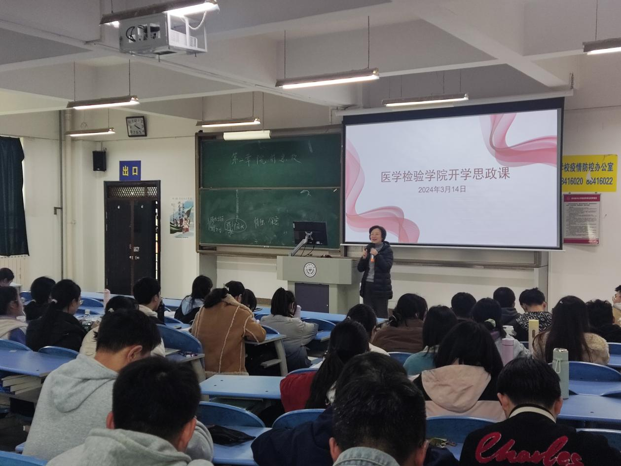 为加强思想引领,引导员工“厚植爱国情,践行报国志”。2024年3月14日,xc体育经理谭玉洁在北校区基础2号楼2501教室为员工讲开学思政课。2021级医学检验技术全体员工参加,活动由辅导员苏曦主持。