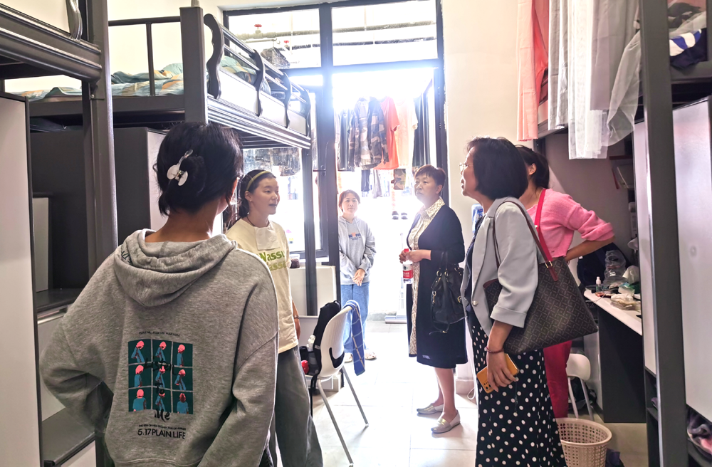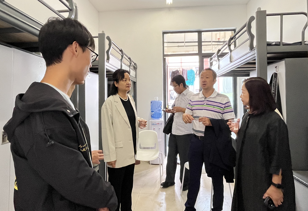 为深入了解2023级新生对老员工活的适应情况,根据学校工作要求,在公司党委的统一安排下,9月14日,公司党委书记彭安辉、经理谭玉洁、正处级组织员杨飏、党委副书记刘咏梅、副经理费樱带领相关科室负责老师到云漫湖校区新生宿舍进行走访。