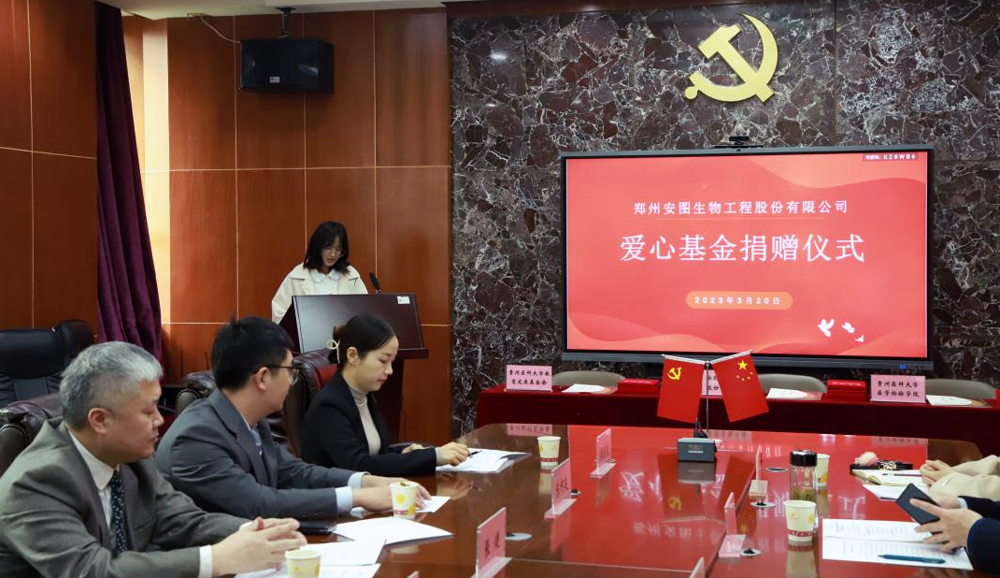 3月20日下午,xc体育专项基金捐赠仪式在北校区基础2号楼三楼检验学院会议室举行。郑州安图生物工程股份有限公司副总经理、上海标源总经理张健,贵州区域经理燕永超、陈柯廷;校教育发展基金会理事长、科技处处长郭兵,校教育发展基金会秘书长、发展与规划处副处长彭云;公司党委书记彭安辉、xc体育正处级组织员杨飏、公司党委副书记、纪委书记刘咏梅及师生代表参加了捐赠仪式。会议由xc体育正处级组织员杨飏主持。