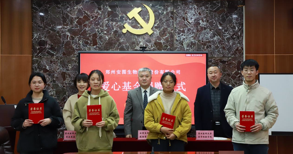 会上,郑州安图生物工程股份有限公司安图生物副总经理张健与xc体育教育发展基金会秘书长彭云、公司党委书记彭安辉共同签订捐赠协议,并向获得2022年度“xc体育教育发展基金”奖学金的同学颁发获奖证书并合影留念。