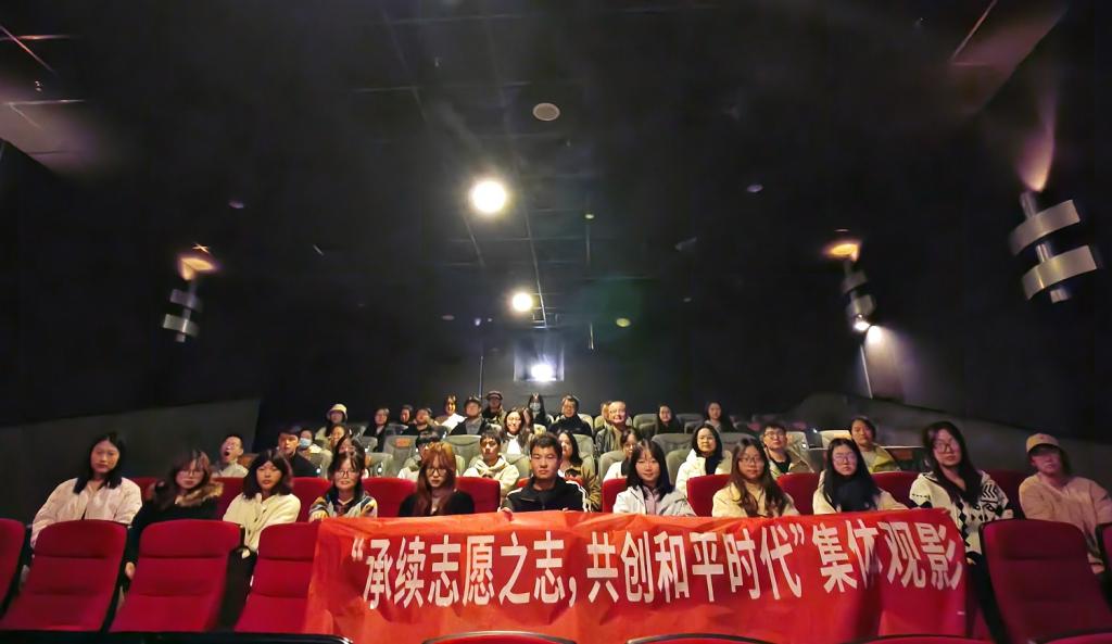 为庆祝新中国成立75周年,纪念人民志愿军抗美援朝出国作战74周年,进一步引导员工党员缅怀革命先烈,重温红色记忆、汲取奋斗精神,2024年11月22日,xc体育教工党支部、员工党支部、研究生党支部联会开展了“承续志愿之志,共创和平时代”主题党日活动,26名师生赴影院集中观看并学习了红色影片《志愿军:存亡之战》。