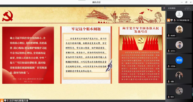 为学习贯彻党的十九届六中全会精神,让同学们感悟党的百年奋斗重大成就和历史经验,增强践行初心使命的思想自觉和行动自觉,努力将理论学习成果转化到学习生活实践中。公司各年级团支部于11月17日—20日积极开展了“党的十九届六中全会精神”专题学习会。