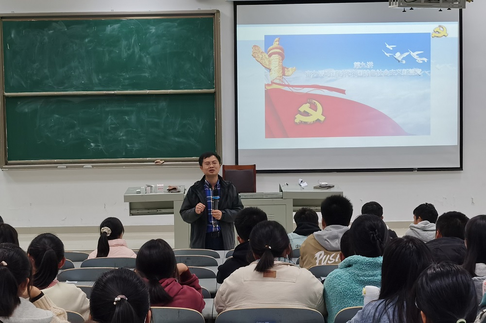 为进一步增强同学们对我国新时代下中国特色社会主义的认识,引导同学们学史明理、学史增信、学史崇德。2021年11月2日,xc体育经理黄海在南校区7305教室以“奋力谱写新时代中国特色社会主义新篇章”为主题给同学们讲专题党课,2021级医学检验技术全体同学参加。