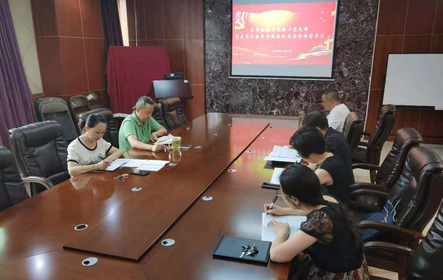 xc体育教工党支部结合前期党史学习教育开展情况,围绕“学党史、悟思想、办实事、开新局”认真贯彻“学史明理、学史增信、学史崇德、学史力行”要求,于7月13日在基础二号楼三楼会议室召开教工党支部党史学习教育专题组织生活会会前学习暨谈心谈话会。教工党支部全体党员同志参会。