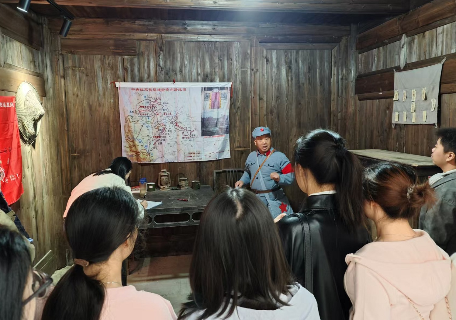 在花溪区青岩红军作战指挥所, 全体师生党员身临其境的学习了“乌江天险重飞渡,兵临贵阳逼昆明”的狮子山战役历史。在讲解老师的带领下,每一处细节都如同翻开历史的一页,大家深切感受到那段峥嵘岁月的厚重与庄严,心灵受到了深刻的触动,接受了一次生动而深刻的党性教育。