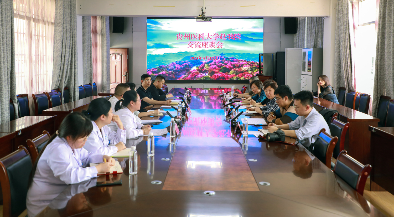 17日上午,公司一行到达七星关区人民医院。七星关区人民医公司党委书记刘咏梅、纪委书记郭正松、经理助理陈菊、副经理曹坤以及医院相关科室负责人与公司进行工作座谈。刘咏梅详细介绍了七星关区人民医院的整体情况并对公司一行表示热烈的欢迎。谭玉洁从访企拓岗、实习基地拓展等方面介绍了公司此行的主要目的。随后双方针对员工实习、就业以及相关科研工作进行了深入探讨并达成初步共识。李雪梅介绍了今年毕业生的就业情况,希望医院能够助力就业,实现共赢。