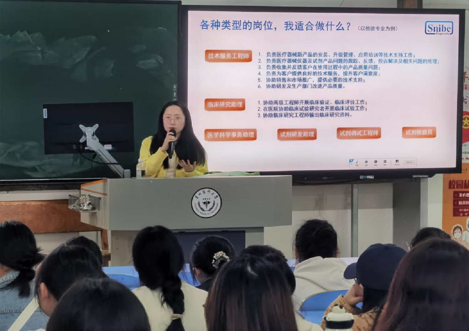 最后,公司经理谭玉洁结合医学检验的专业特点和就业岗位前景,嘱咐同学们要充分领会两位嘉宾的分享内容,积极思考、提前规划,明确目标、持续学习,始终保持清晰思考的习惯,不断提升个人综合实力,积极为行业进步及国家建设贡献力量。