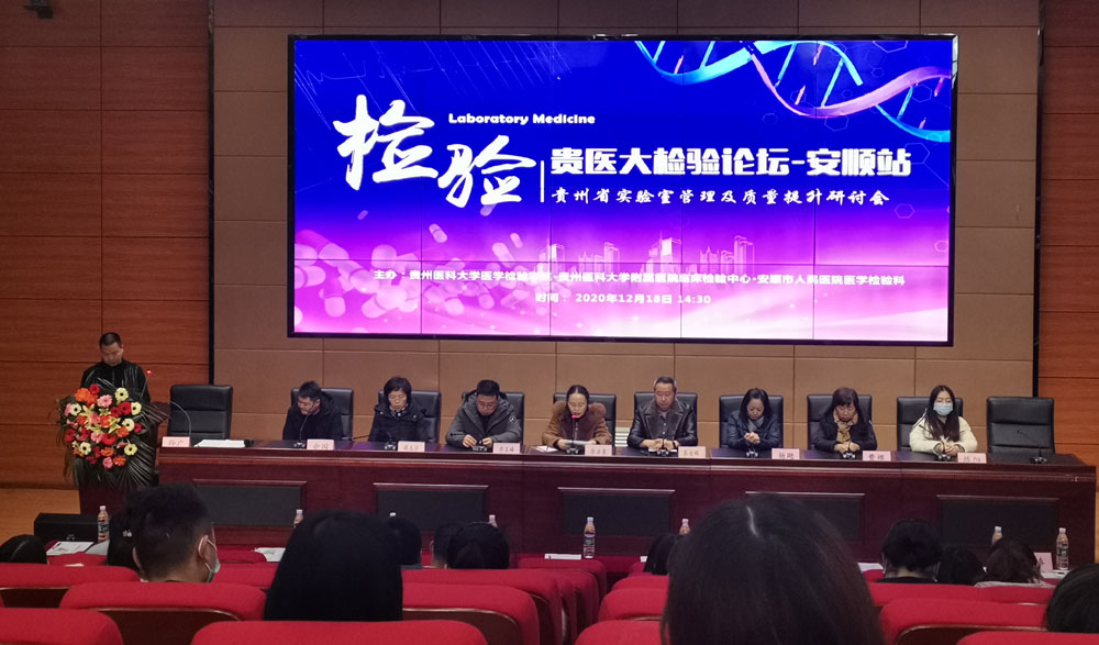 2020年12月18日,由xc体育、xc体育附属医院临床检验中心、安顺市人民医院医学检验科主办的xc体育检验论坛暨贵州省实验室管理与质量提升研讨会(安顺站)在安顺市人民医院会议室举行。安顺市人民医院经理、党委副书记张云东、副经理佟玉峰、检验科主任孙广,公司党委书记彭安辉、正处级组织员、党委副书记杨飏、副经理费樱,附院临床检验中心副主任谭玉洁教授、余芳教授、佘国老师以及辅导员出席会议。