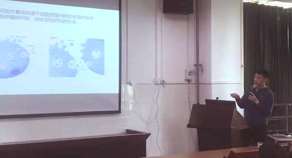 11月8日下午,公司刚从美国留学回来的韦四喜博士在公司为师生们作了题为“Bench to Bedside:肺癌的体外诊断”的讲座。讲座由xc体育副经理费樱教授主持。