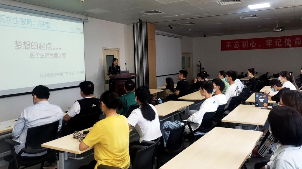 根据中共中央、国务院《关于加强和改进新形势下高校思想政治工作的意见》提出的坚持全员全过程全方位育人(简称“三全育人”)的要求,结合本支部、教研室开展的特色项目——本科生专业辅导员计划“走进校园,我们和你一起共成长”系列教学活动。为了让同学们更快地适应新的实习环境,在实习中更好的兼顾实习、考研、就业,6月2日下午14点在xc体育附属医院临床检验中心六楼会议室开展“专业辅导员计划之教育小讲堂——梦想的起点”。活动由支部党员陈瑜主持,xc体育正处级组织员杨飏、辅导员苏曦、支部书记刘咏梅、支部组织委员林涛、临床带教老师、2019级实习生、进修生、规培生共计40多名师生参加活动。