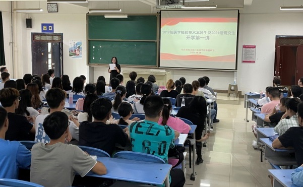 金秋九月,2019级的同学们进入专业课学习,同时也迎来了2021级研究生。根据中共中央、国务院《关于加强和改进新形势下高校思想政治工作的意见》提出的坚持全员全过程全方位育人(简称“三全育人”)的要求,本教研室和支部结合开展的本科生专业辅导员计划“走进校园,我们和你一起共成长”系列教学活动,为了让同学们进一步明确学习方向,了解医学检验专业的发展。9月8日下午,临床检验基础与血液学检验教研室邀请了xc体育研究生科科长谢婷婷副教授、在读博士万秀方老师、在读硕士曾珍以及2018级医学检验技术专业本科实习生李晓颖在公司北京路校区2401教室开展“开学第一讲”活动。讲座由教研室主任刘咏梅副教授主持,公司党委委员、正处级组织员杨飏老师、附属医院医务处副处长莫非老师、附属医院科研处副处长刘丽荣老师、2019级专业辅导员计划教师团队的指导老师、辅导员苏曦老师、2021级博士和硕士研究生、2018级实习生及2019级全体员工等150余人参加了讲座。