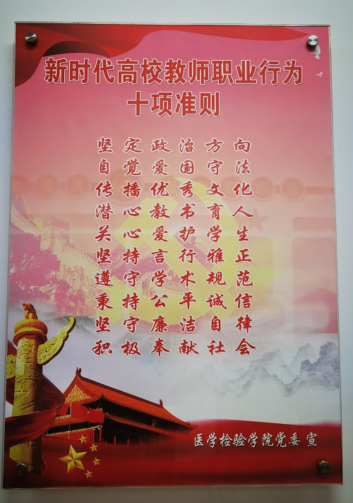为进一步加强师德师风建设,强化教师职工的师德底线意识、规范职业行为,2021年7月8日,xc体育在基础二号楼三楼宣传栏举行《新时代高校教师职业行为十项准则》上墙仪式。